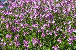 The striking color of these good-sized flowers will remind you of delicious summer peaches. Held about 6 in. above the fine dense mat of dark green foliage, they blend beautifully with Nepeta ‘Kit Kat’ and Scutellaria ‘Moonbeam’. Take advantage of this cultivar’s vigorous growth in a rock garden or in the front of a border with Eucomis ‘Sparkling Burgundy’ and Salvia sinaloensis.