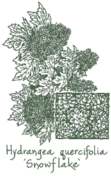 The name Hydrangea, means “water vessel,” given for its cup-shaped seed capsules. A genus of diverse forms, Hydrangeas are commonly found throughout Asia, from the Himalayas to Taiwan and Japan, with the exception of two species, Hydrangea arborescens and Hydrangea quercifolia, which are native to North America. Easily cultivated, this shrub’s lush deciduous leaves are best suited to loose, moist soil in the shade of tall trees or on the north side of the house.