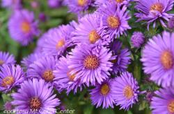 Named for the copious, fine rayed, sunny-centered daisies, mirroring the azure atmosphere of a New England fall day, this Aster was also selected for its trim short stature and easygoing, stalwart disposition. Small, narrow green leaves emit a light scent when handled and form a low, close-knit bushy mound that abides dry, rocky or sandy soil. While the species is one of the last wildflowers to bloom in the eastern U.S., ‘October Skies’s lavender-blue flowers maintain their good looks after an early frost, lend jaunty accents to bouquets and beckon the butterflies.