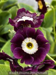 Steeped in opulence, fully double deep maroon blossoms are sweetly perfumed and spangled with glittery yellow margins and eyes. The long blooming flowers appear in tight clusters above scalloped oval-shaped pale green leaves that compose a sturdy textural clump. Well-suited for an intimate spot by a favored bench, this gorgeous seldom offered Primula polyantha cross appreciates adequate moisture and supplemental compost.