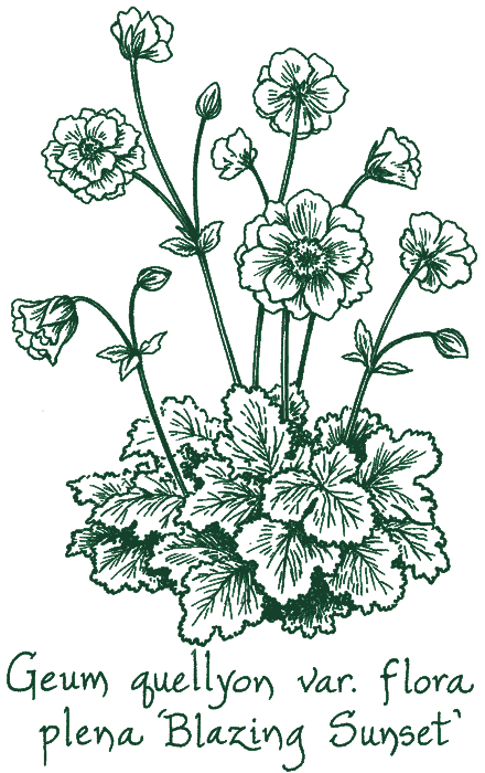 The sizzling scarlet-red display of ruffled, fully double roselike flowers perched upon 2 ft. tall well-branched stems will blaze this award-winning perennial into your heart. Peerless among Geum, ‘Blazing Sunset’s blooms claim to be the largest, nearly 2 ½ in. wide, the earliest to open and the last to call it quits. Anchoring the spunky floral pomp, winsome broad hairy leaves compose an undemanding compact semievergreen mound that stays low, maintains a lush green presence and can be situated right up front.